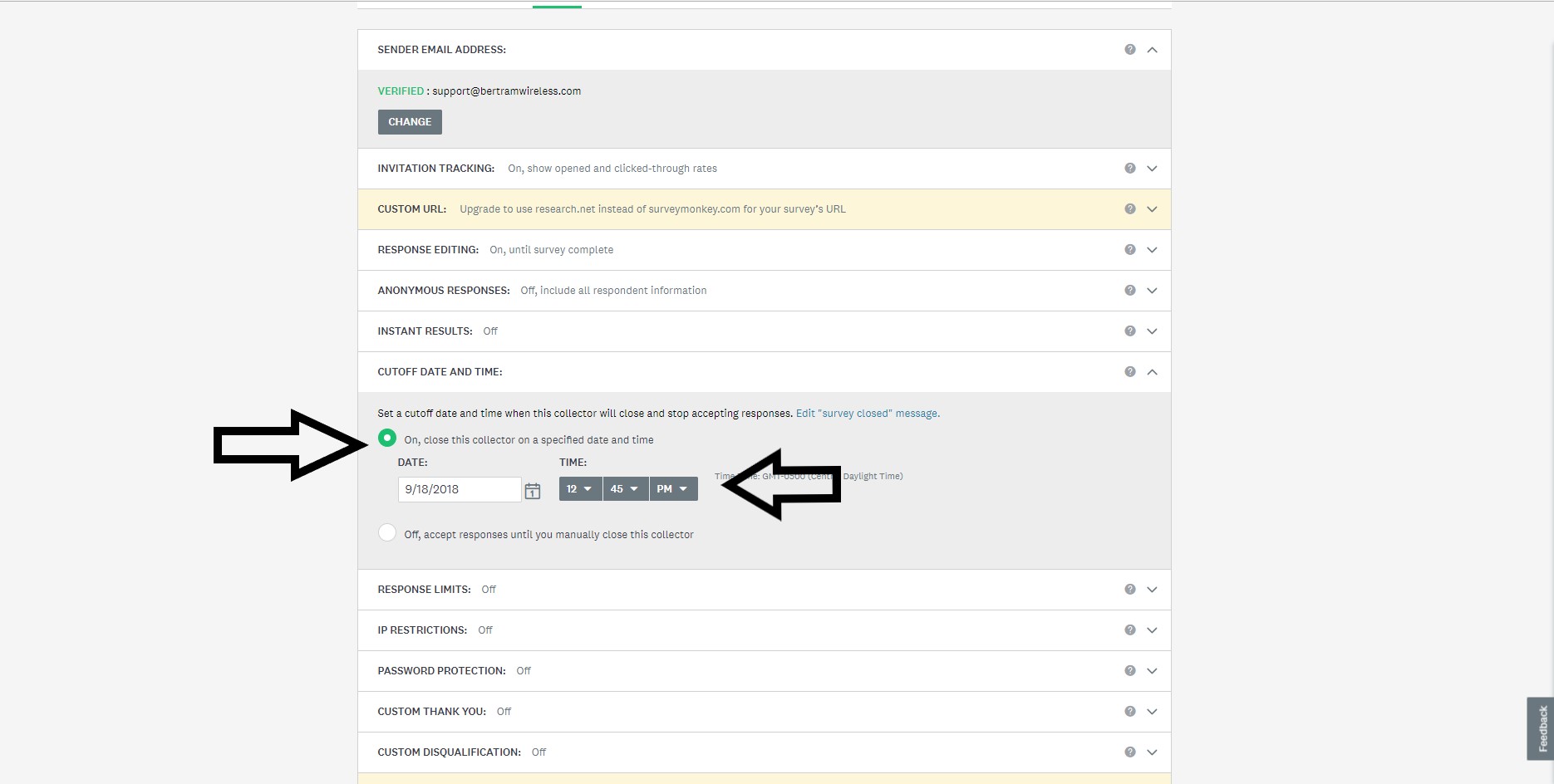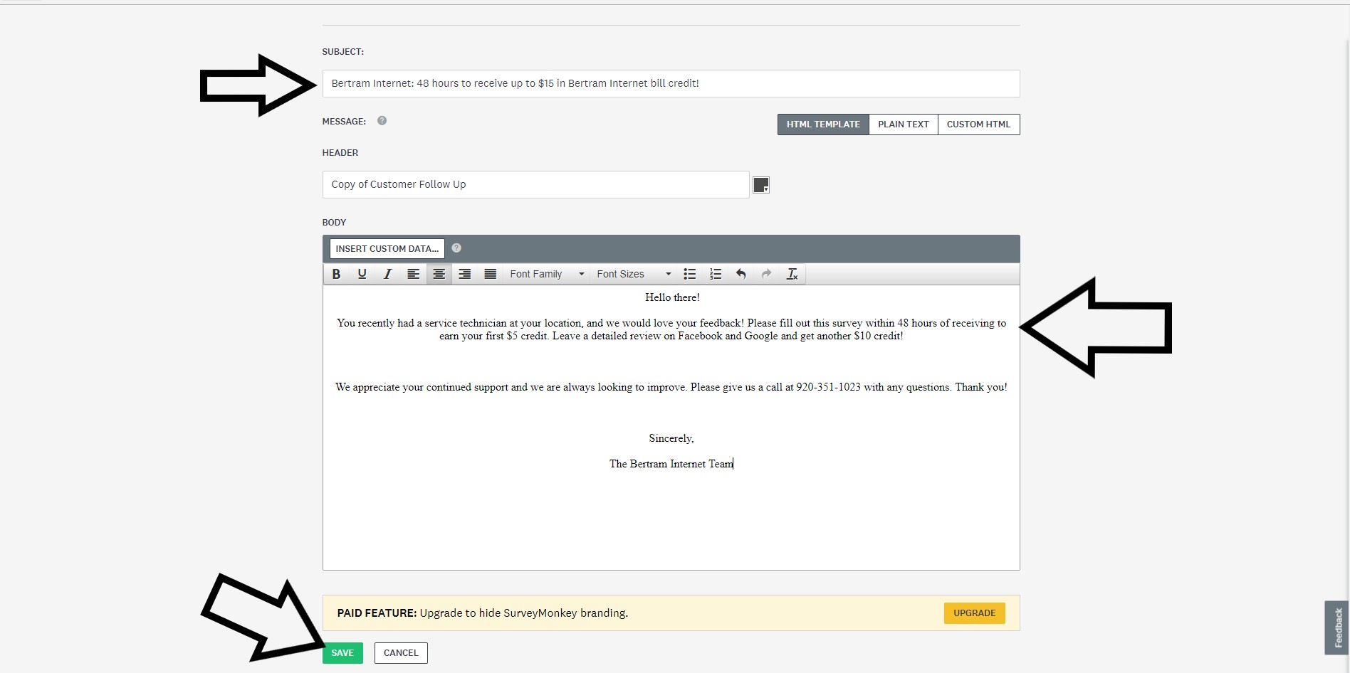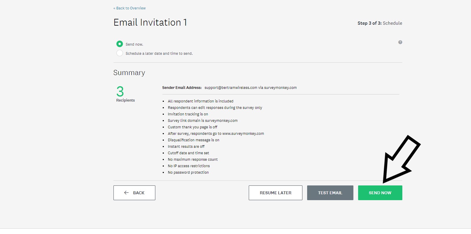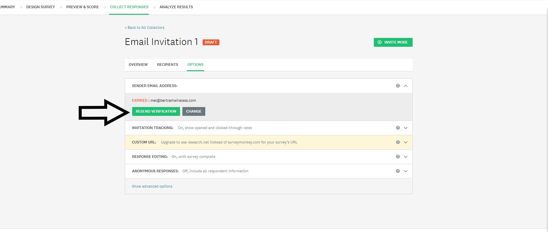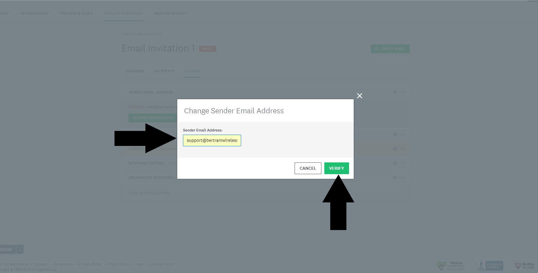 Under the email invitation 1 options section, change the email address to support@bertramwireless.com