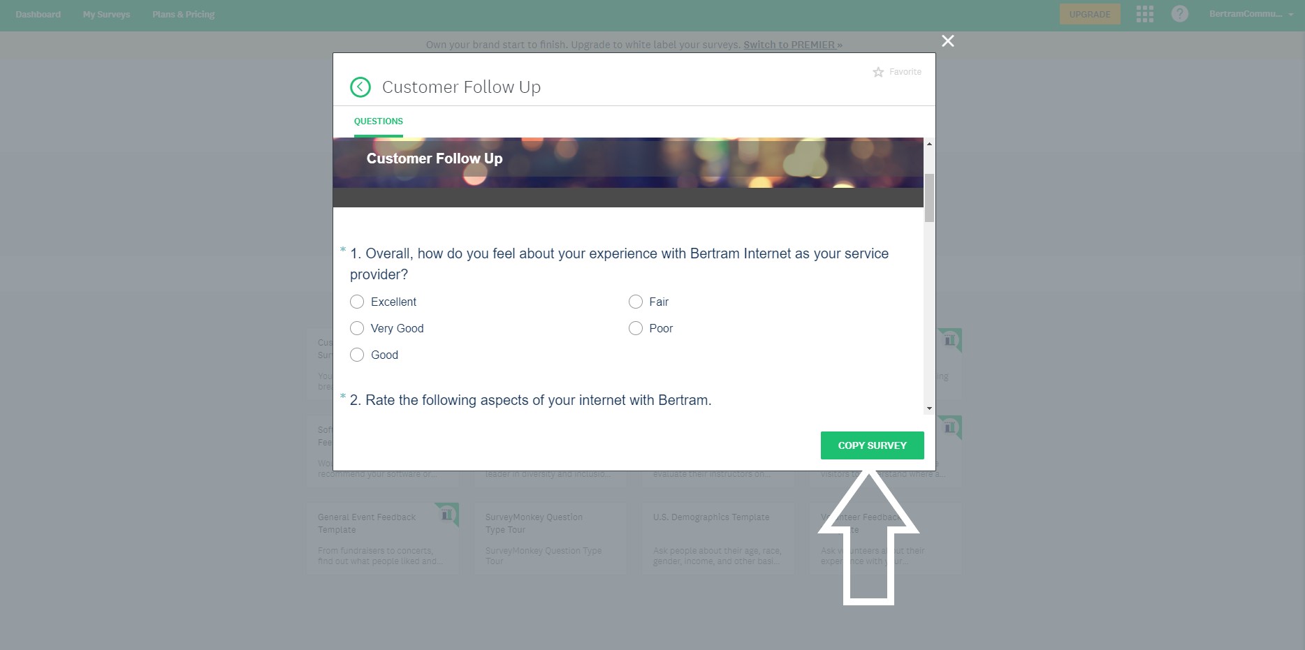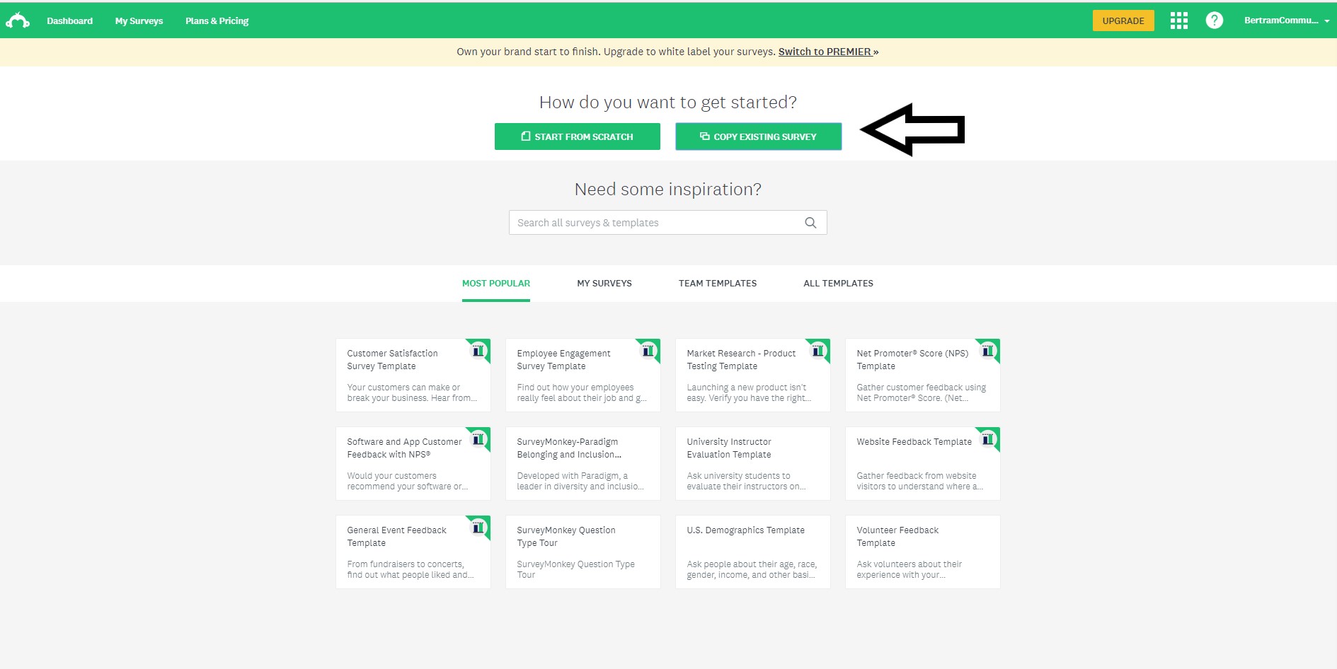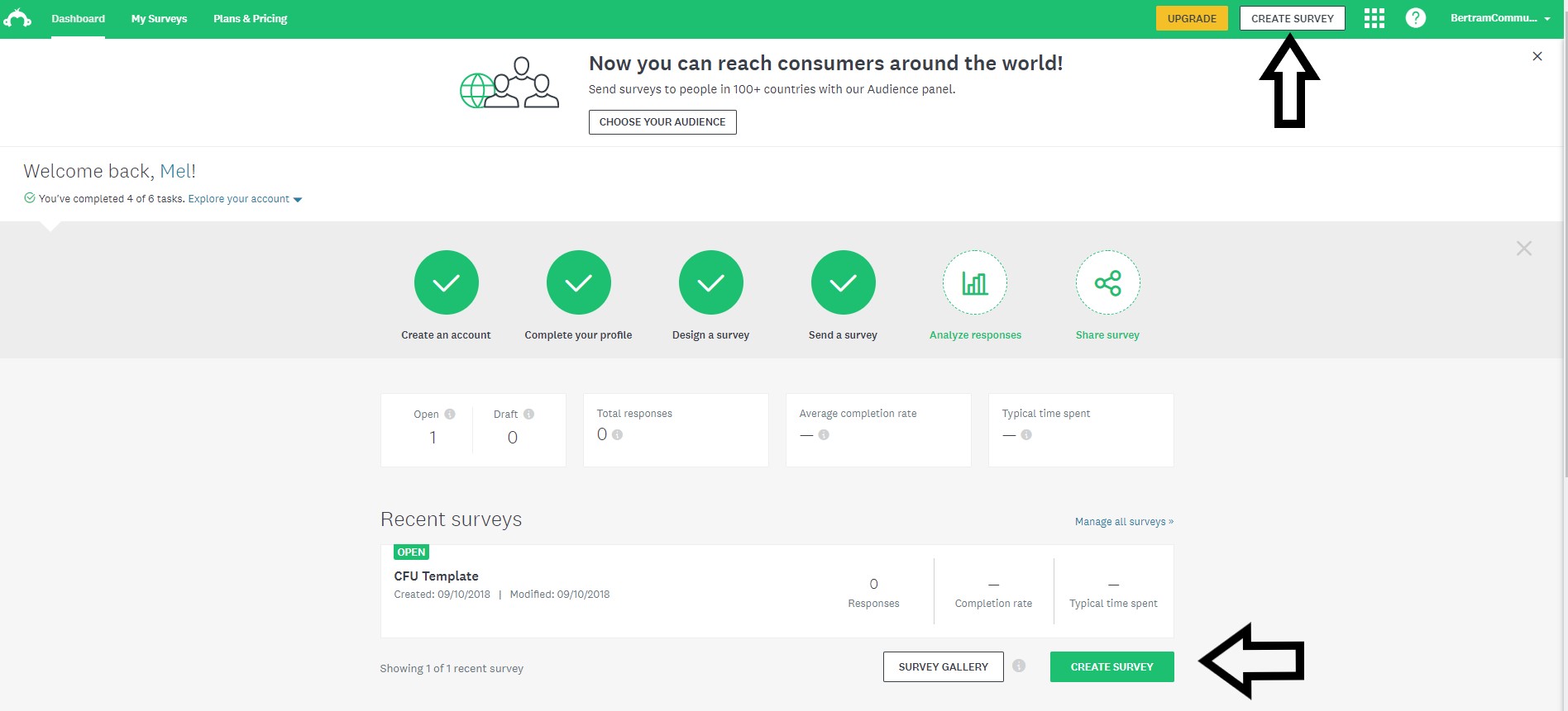 This will take you the recent surveys screen. In the upper right hand corner you will see “create survey” button.