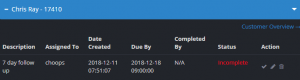 Customer Tasks gives you a reminder system for following up with customers, make scheduling changes, and other time management tasks.