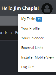 You can find ‘My Tasks’ under your profile’s drop down menu. Select My Tasks to open your control panel.