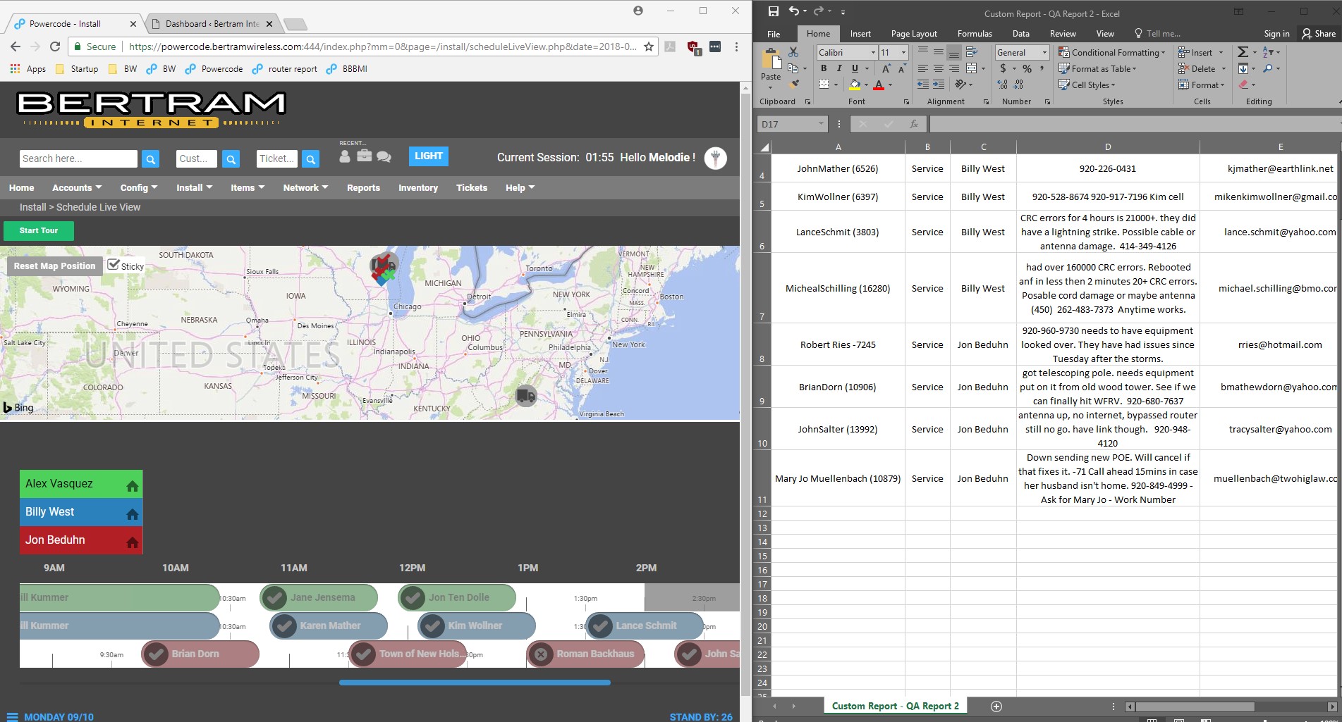 Open the results from the QA Report 2- Remove any jobs that were fails, equipment pickups or surveys (you can figure out which jobs failed by looking at the schedule for the day)