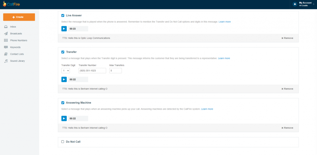 - Select “Live Message”>Select the voice file for the company you are robocalling. ENSURE IT IS THE PROPER VOICE FILE.